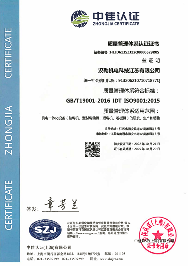 質量管理體系認證證書